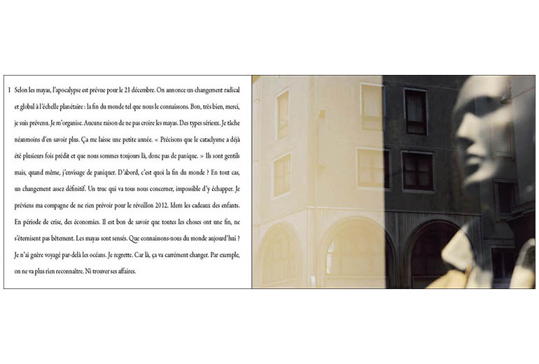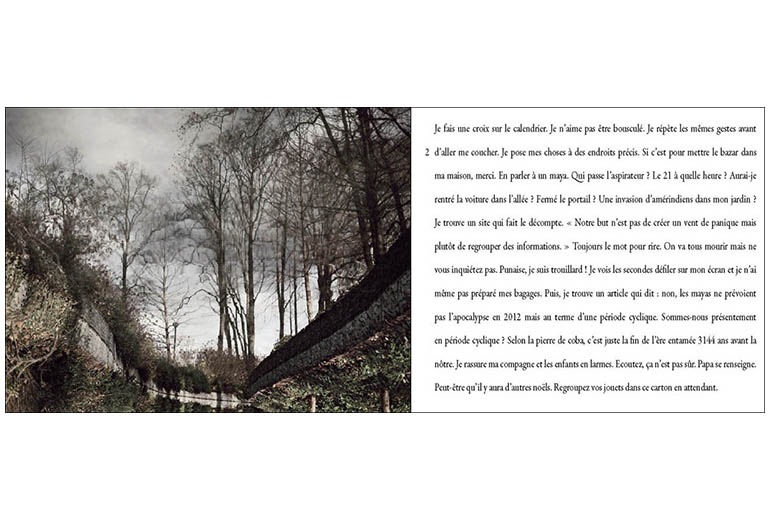 Tout d’abord, le thème. A l’époque, j’avais commencé de m’intéresser à la « fin du monde 2012 » dont tout le monde parlait. On avait déjà peur. L’idée serait donc une sorte de décompte fatal allant de janvier à décembre 2012. Puisque nous allions tous disparaître, autant essayer de laisser une dernière trace.