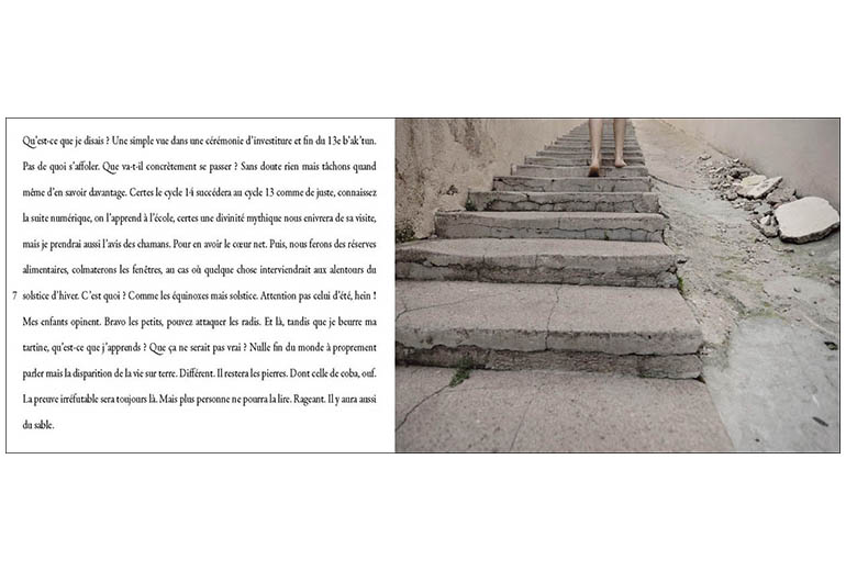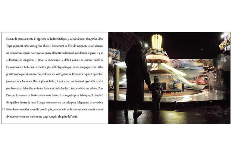 Ok. Marie accepta le concept. A condition de nous en éloigner le plus possible. Thème prétexte pour mieux en rire. Notre ultime année ne devait certainement pas être consacrée à l’inquiétude ou au désespoir. Comment traiter la morne prédiction des chamans mayas visuellement et littérairement ?
